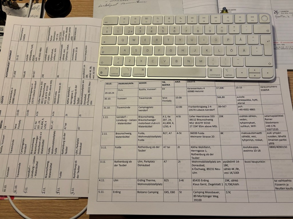 Niin, ison työn tein matkasuunnitelman kanssa. Se ei ollut mikään yhden illan istuminen, vaan käytin kaksi. Sehän on luonnos, ja varmaan monenlaisia muutoksia ennen kuin se on totta. Paluumatkaa ei tietenkään ole vielä kirjattu samalla tarkkuudella.