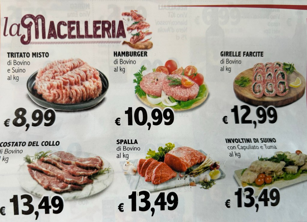 Lähipalvelut riittävät meille yleensä hyvin. Lihakaupassa emme edes ole toviin käyneet. Paikallisesta DeSparista saamme maitotaloustuotteita, kananmunia, kuivatuotteet kuten jauhot ja riisit, ja sitten leikkeleet ja juustoja. Kasvisten hankintaan on useampia mahdollisuuksia, joko torilta tai sitten tältä kiertävältä vihannesmyyjältä. Leivät saa leipurin autolta, ja juustoja suoramyynnistä. Vedetkin hankitaan useimmiten DeSparista. Mutta sitten, kun haluamme jotain tiettyä tai on paljon ostettavaa, vuokraamme auton ja ajamme johonkin hiukan etäämmällä olevaan isompaan kauppaan.