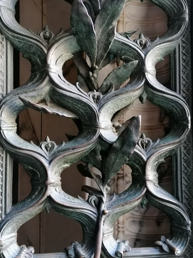 Laudeksen jälkeen kävelimme ensin Neonian kastekappelille eli baptisterioon, jonka mosaiikkeja ja alabasteri-ikkunoita saimme edelleen ihailla miellyttävässä valossa. Sitä kutsutaan myös ortodoksiseksi erotuksena areiolaisten kappelille, ja sen rakennusmateriaalina lienee käytetty paikalla ollutta vanhaa kylpylää. Sen jälkeen menimme viereiseen Arkkipiispan taloon, jossa vierailimme pienessä yksityisessä kappelissa. Se on nimetty apostoli Andreaksen mukaan. Koko pieni kappeli on lattiasta kattoon vuorattu pyhistä kertovilla mosaiikeilla. Arkkipiispan talossa on myös museo ja erittäin hyvä matkamuistomyymälä, josta taisi lähteä kortteja ja magneetteja useamman pyhiinvaeltajan matkaan. Viereinen Duomo oli myös erilaisuudessaan mielenkiintoinen pistäytymiskohde.
