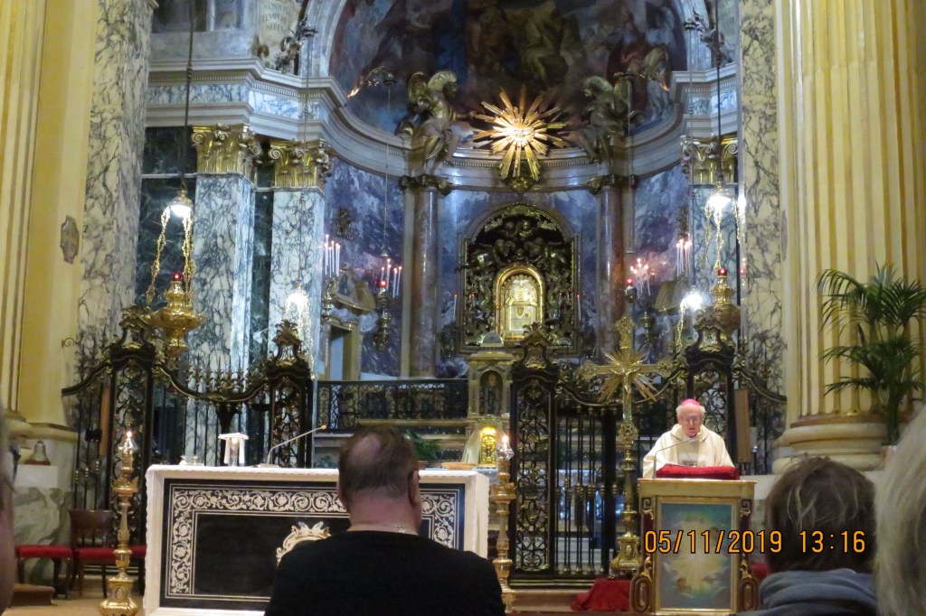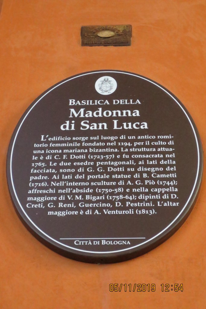 Toinen päivä matkalla alkoi pyhiinvaelluksella Santuario di Madonna di San Lucalle, jossa oli pyhä messu eli katolinen messu piispa Sipon johdolla. Tämä upea kirkko sijaitsee 300m korkealla kukkulalla hieman Bolognan keskustan ulkopuolella. Se näkyy jo Milanosta tullessa siluettina taivasta vasten vihreiden puistojen keskellä ja sinne vie maailman pisin katettu käytävä, jossa on 666 holvia 3,8:n kilometrin matkalla. Tänne käveli suurin osa ryhmästä yhdensuuntaisen matkan ollessa noin 5km, vain osa käytti hyväkseen sikäläistä maisemajunaa eli huonohenkisille ja jalkavaivaisille oli omakustanteinen helpotus.