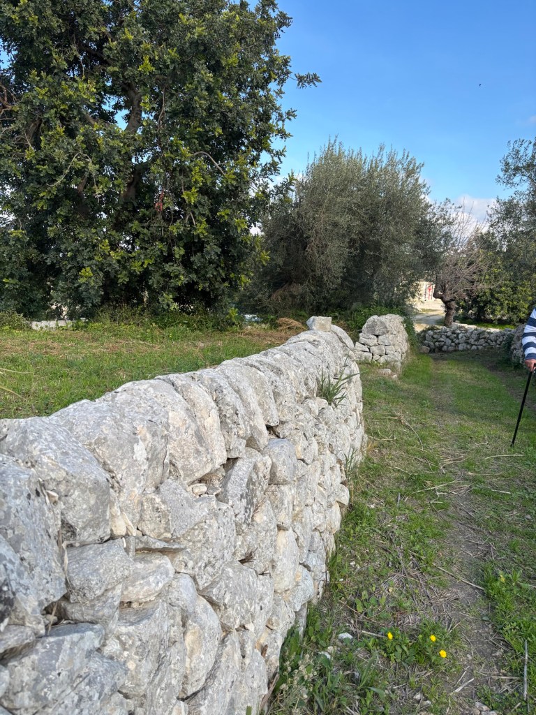 Ja koko tämän kivirakennusten muodostaman asuinalueen ympärillä on jo nyt oliivitarha, granaattiomenapuita, myrtillopensaita (kuin mustikka), sitruunapuita ja appelsiinipuita. Maata on vielä vapaana niin, että voi istuttaa lisää hedelmäpuita. Jo nyt on ystävämme joutunut keittelemään runsaasti hilloja, ja omaa hyvää oliiviöljyä saivat pitkäksi aikaa omista puista.